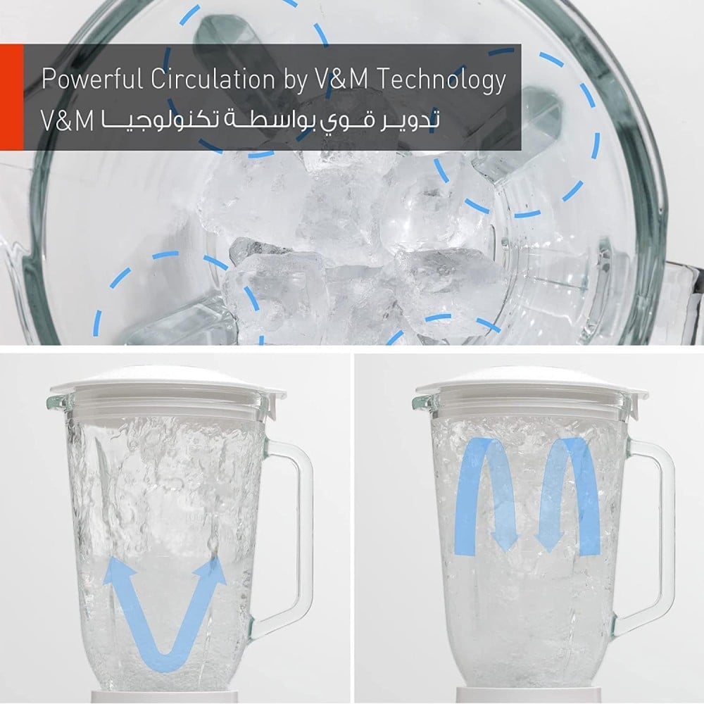 استمتع بمرطبات الفاكهة والخضروات الكاملة اللذيذة والصحية! يساعد المزيج المكوّن من الأضلاع الأربعة على السطح الداخلي للإبريق والشفـرات ذات الشكل الأمثل في مزج الطعام ديناميكيًا، مما يسمح بسحق الأطعمة الصلبة والصغيرة بالتساوي.