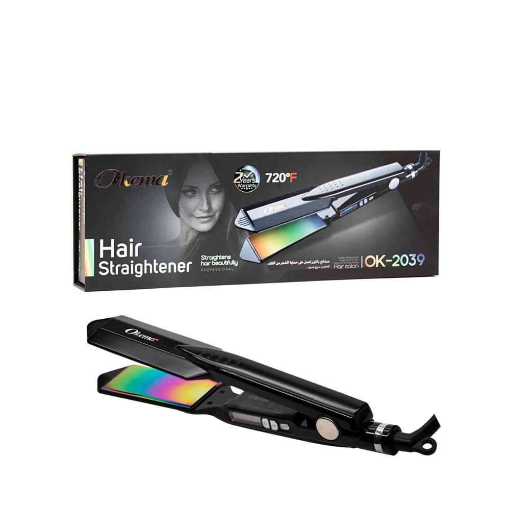 وصف المنتجسيراميك تمليس الشعر الاحترافية من اوكيما OK-2039 : احصلي على تموجات الشعر المثالية في وقت قصير وبكل سهولة. يتميز الجهاز بالتحكم بالحرار...