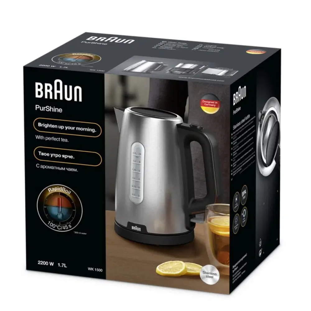 عنصر تسخين فعال بقوة 2200 واط لغلي سريع سعة 1.7 لتر، مثالية لتحضير عدة أكواب من الشاي أو القهوة حماية رباعية الاتجاهات: إيقاف تشغيل تلقائي، وحماية ...