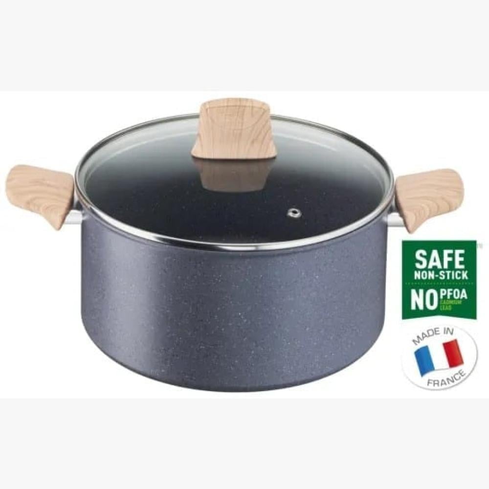 قدر جرانيت تيفال بغطاء زجاج 24 سم 5.2 لتر NATURAL FORCE