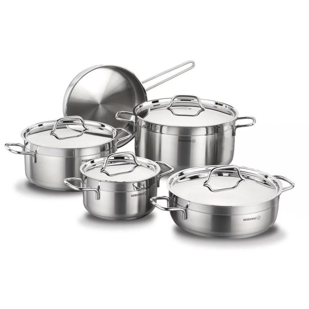 آمنة للاستخدام في الفرن وغسالة الصحون - يمكن استخدام مجموعة أواني الطهي هذه من كوركماز على جميع أسطح الموقد بما في ذلك مواقد الحث، كما أنها تتحمل حرارة فرن حتى 260 درجة مئوية. عند الانتهاء، يمكن تنظيف المجموعة بسهولة عن طريق الغسيل اليدوي أو وضعها في غسالة الصحون.